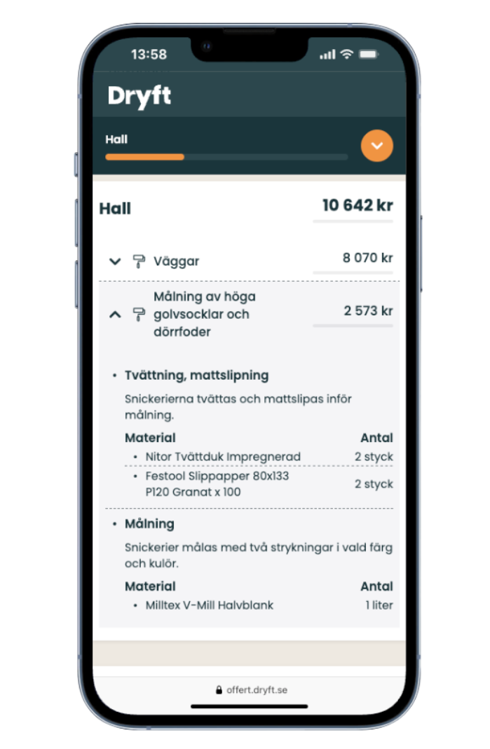 Se exakt vad som ingår – arbete, material och alla moment – helt utan överraskningar.